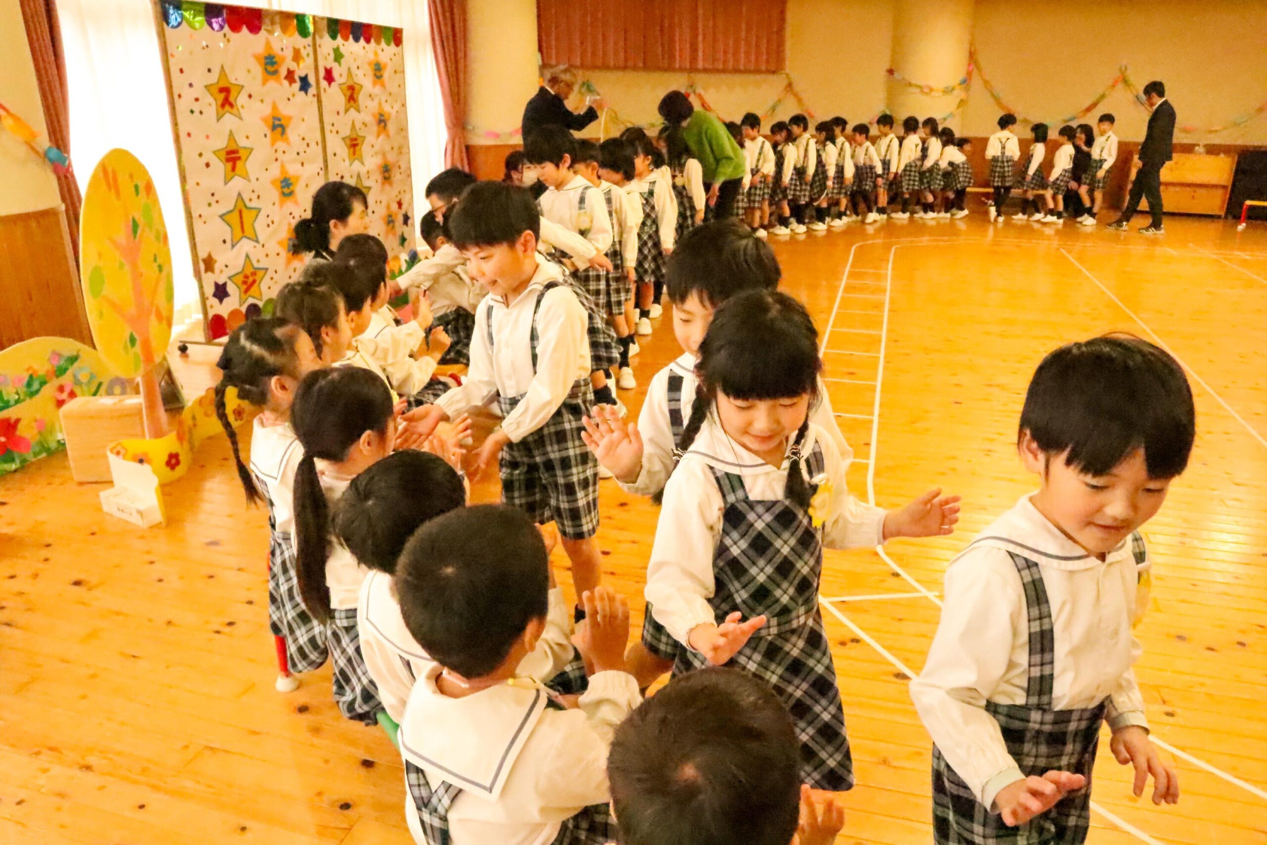そして最後は、年長組のみんなが、年中組・年少組の一人一人とハイタッチ。笑顔があふれ楽しい時間となりました。
