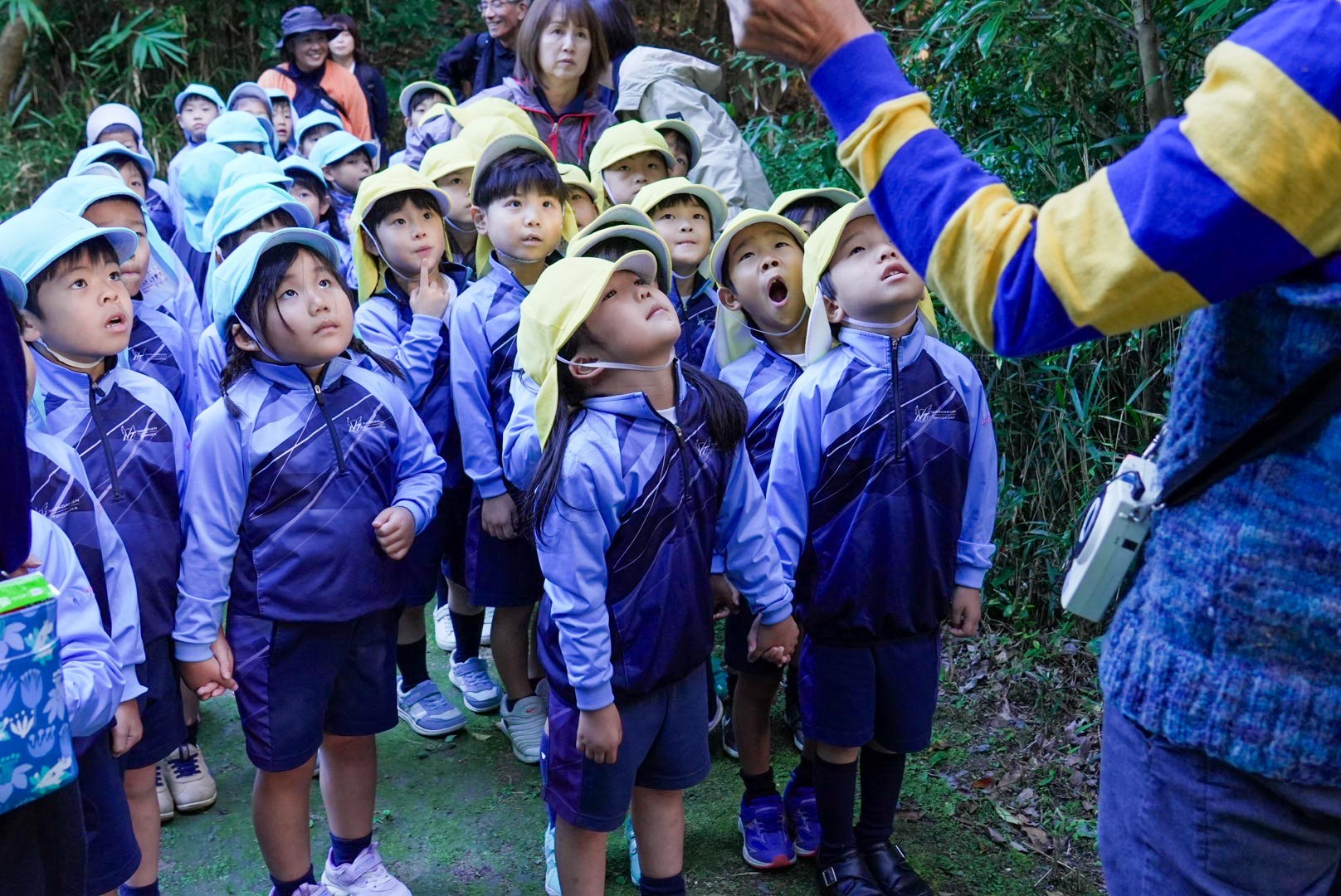 森は紅葉に色づき始めていました。どんぐりの落ちている道をみんなで歩いていきます。イチョウの木から銀杏が採れること、ケヤキの木でできた臼がどうやって作られるか、イノシシがミミズを獲るために掘る穴はどうやって作られるか、森にいる1番目と2番目に危険な生き物や、いい匂いのする花や葉っぱなど、久保先生にたくさんのことを教わり、森の中でたくさん発見をしました。