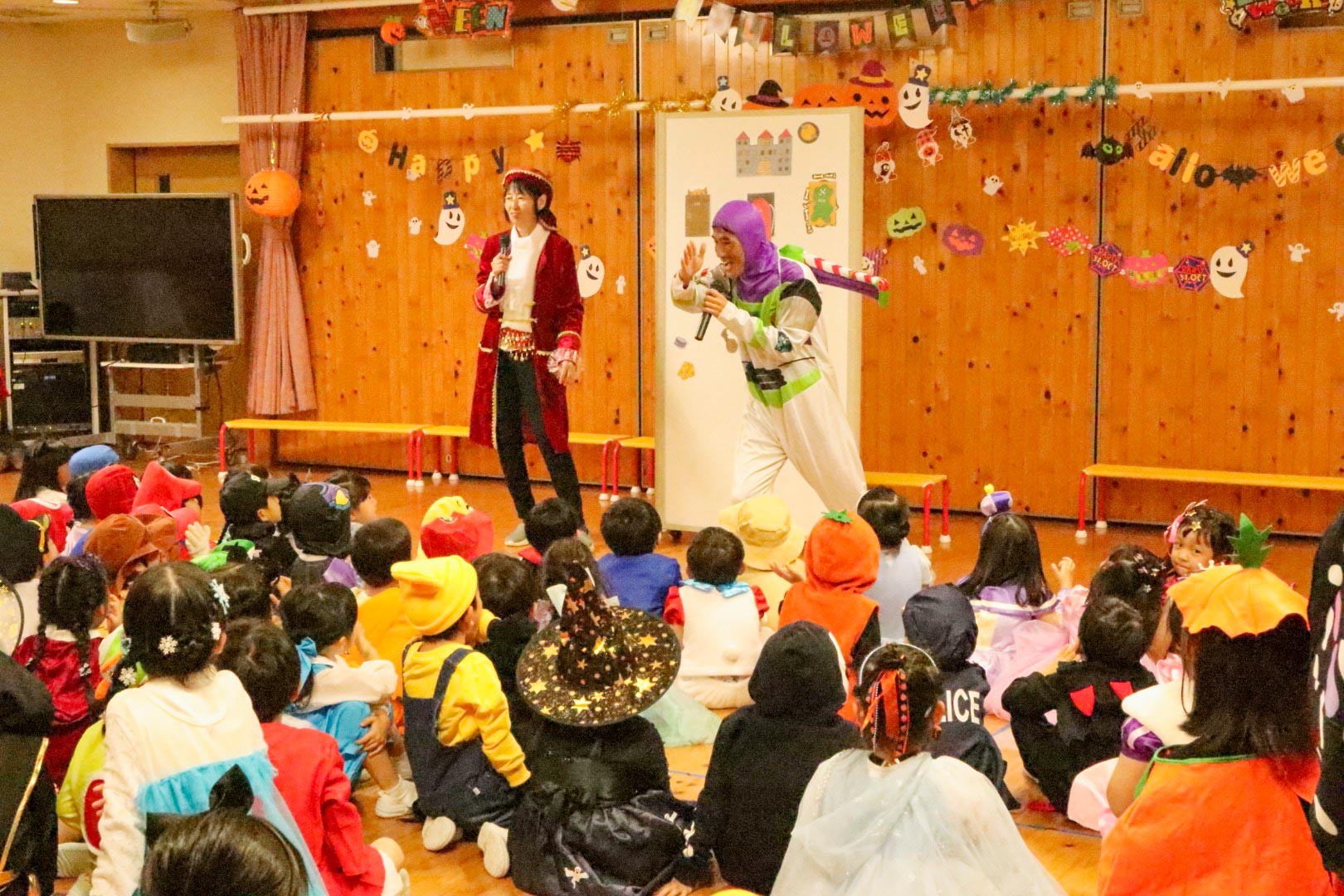 全員が遊戯室に集まると、先生から「さあ!パーティの始まりです!Happy Halloween !!」の言葉で楽しいパーティがはじまりました。