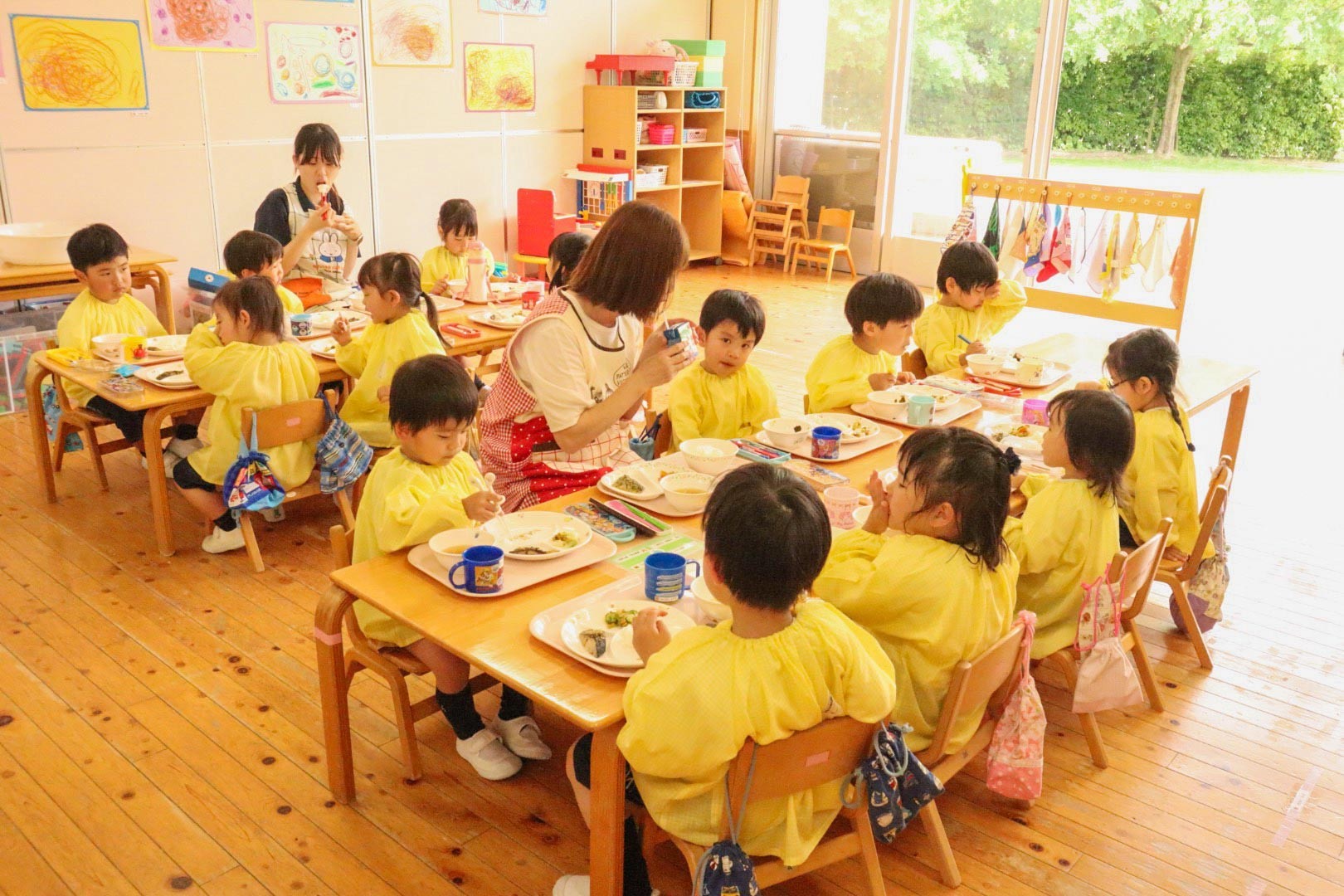 5月24日(金)、年少組の園児たちの給食時間の様子です。