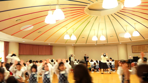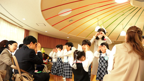 槇園長からの挨拶にありましたが、はじめて子供を幼稚園に預けるときは母子ともに不安が伴うものです。お預けの際、お子さんが大きな声をあげて泣くこともあるでしょう。しかし「それは『お外』と『お家』の違いを理解しているという、成長の証拠です。幼稚園にもすぐ慣れて愉しんでいきますので、どうぞご安心ください」とのことでした。