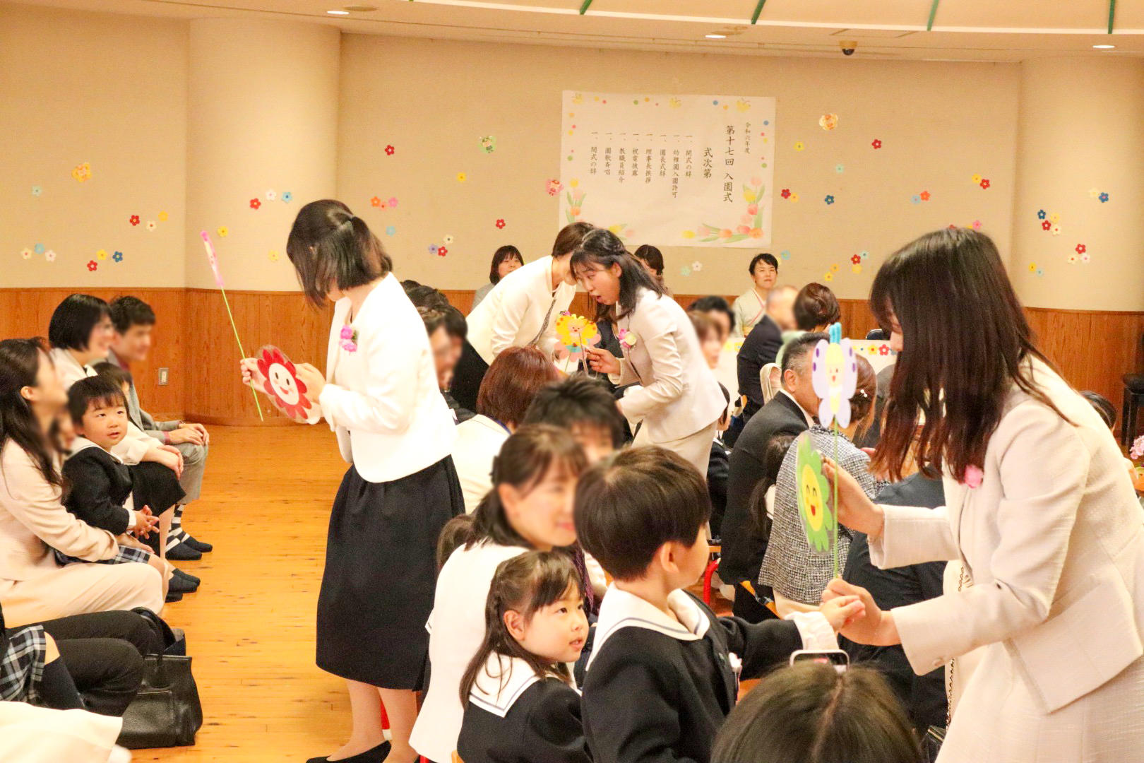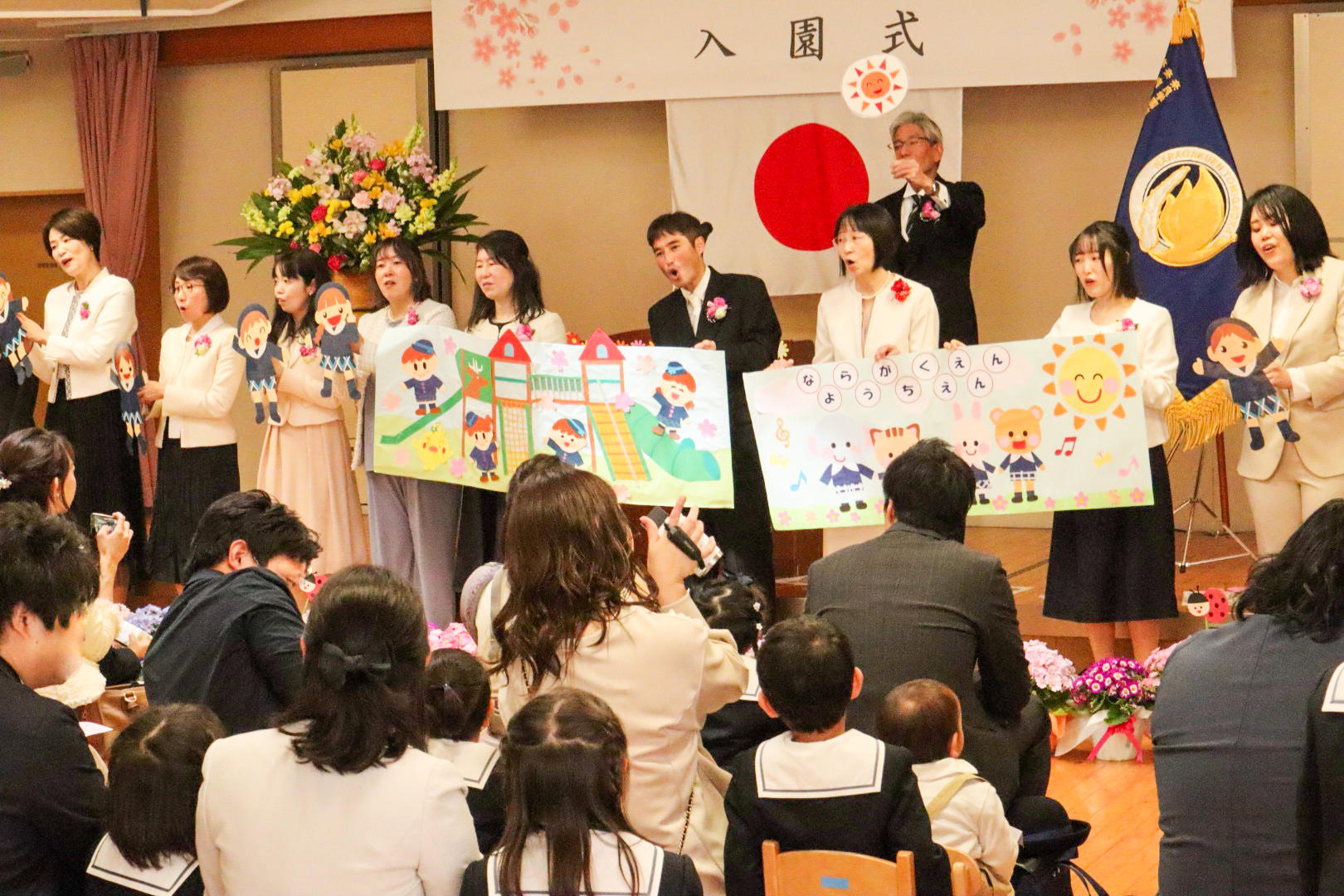 最後に園歌の紹介があり、これからの胸踊る幼稚園生活を祝う入園式が終了しました。