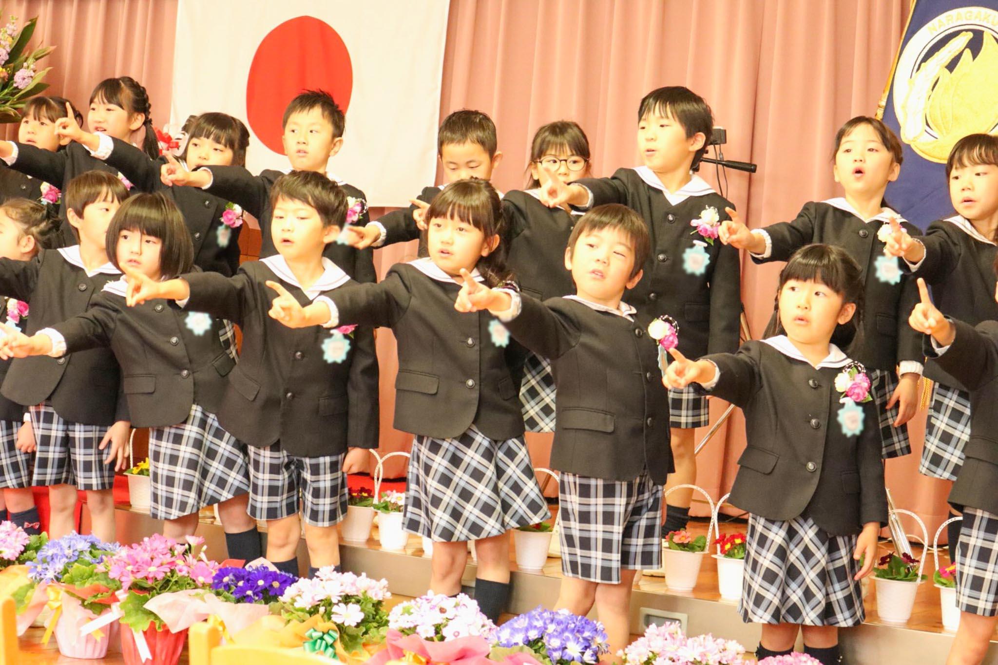 谷川園長は式辞で、「入園したばかりの時を思うと、とてもたくましくしっかりと立派に成長しましたね。自分で考え、積極的に物事に取り組むことも出来るようになりました。出来なかったことが出来るようになった嬉しさをこれからも忘れないでください。小学生になっても、勇気と諦めない心を大切に、いつもありがとうと言ってもらえる人になってくださいね」と話がありました。理事長からは「みんなで力を合わせたこと、そして楽しく遊んだことをこれからも思い出して頑張り抜くことを大切にしてほしい」と挨拶がありました。