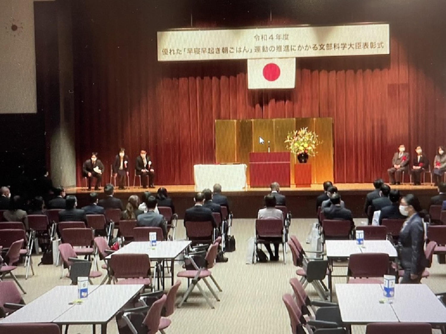 規則正しい生活習慣作りを目指す「早寝早起き朝ご飯」運動を推進してきた活動を文部科学大臣より表彰を受けた。日頃から「あいさつ」「お手伝い」「早寝早起き」などの約束を親子で一緒に決めて実施している。