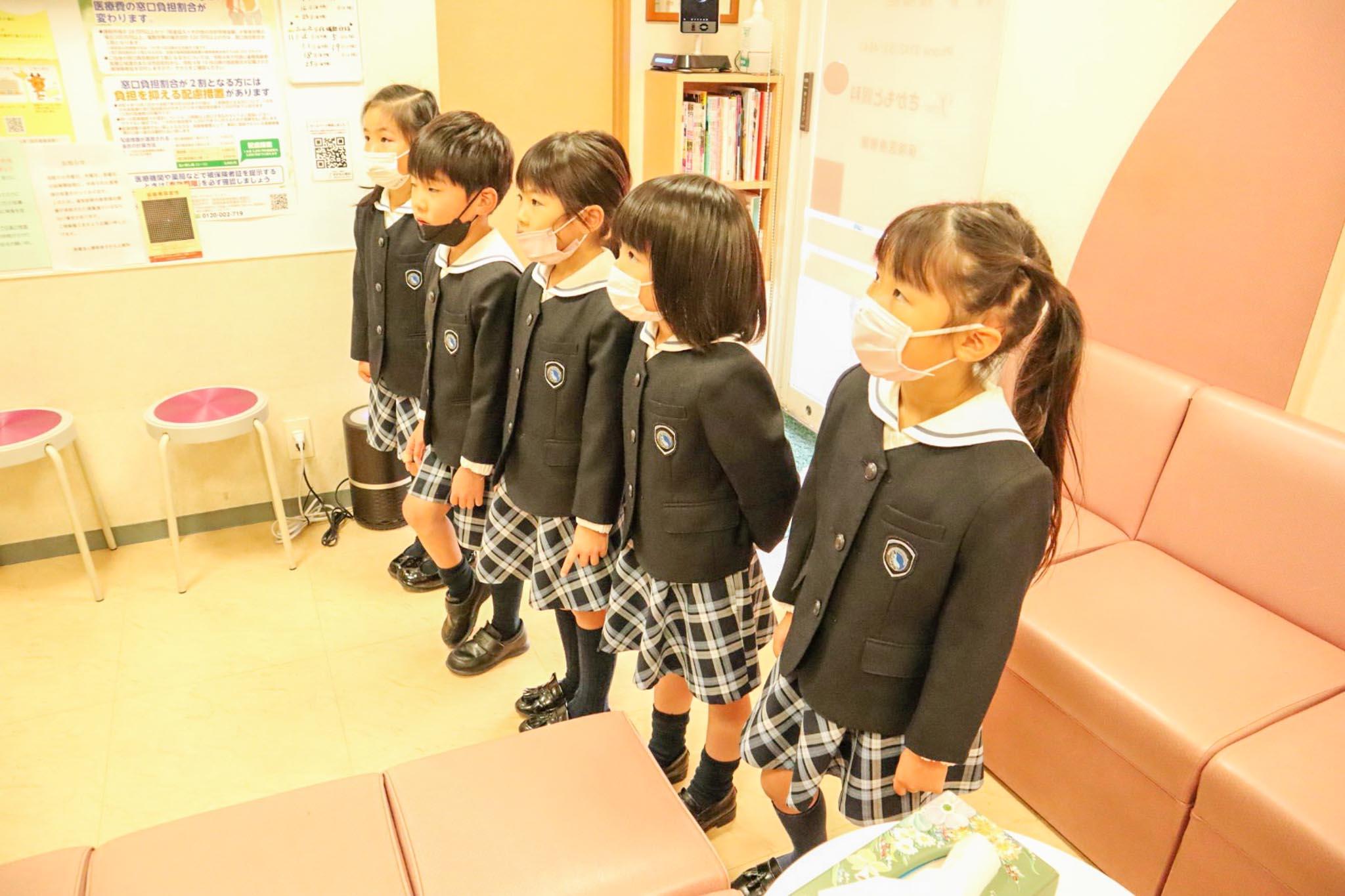 子どもたちから「いつもお仕事ありがとうございます」と言って、年少・年中組の園児たちと一緒に作った”2023年度うさぎのカレンダー”を手渡しました。また、子どもたちから「どんなお仕事をしていますか?」「どうして、このお仕事をしようと思ったのですか?」と質問をさせていただきました。お医者さまからは「みんなを元気にしたいからです」「たくさんの人の役に立ちたいと思ったからだよ」「自分が子どもの頃にお医者さんに助けてもらったので、今度は自分が助ける人になりたいと思ったんだよ」などと真剣に応えてくださいました。