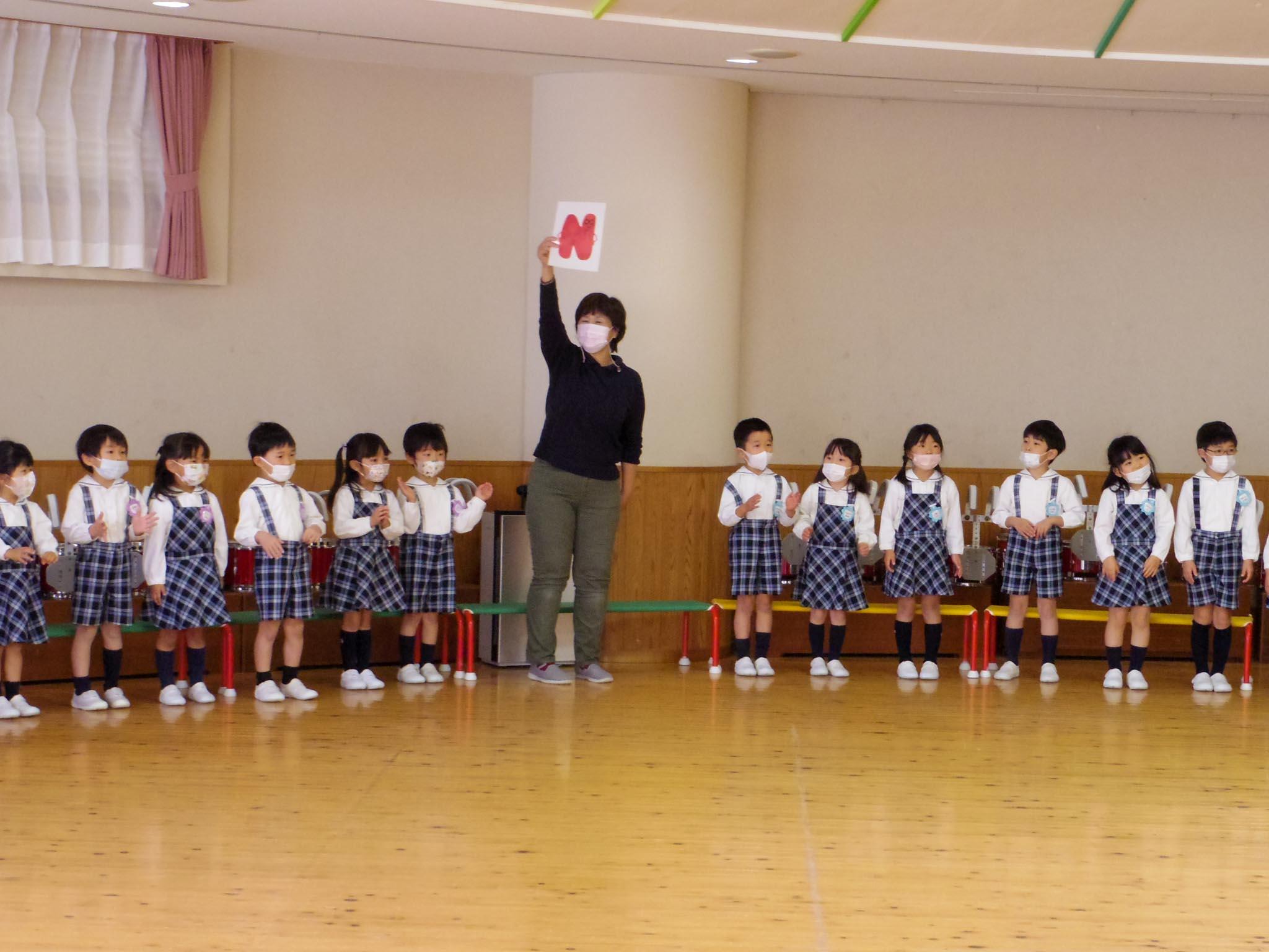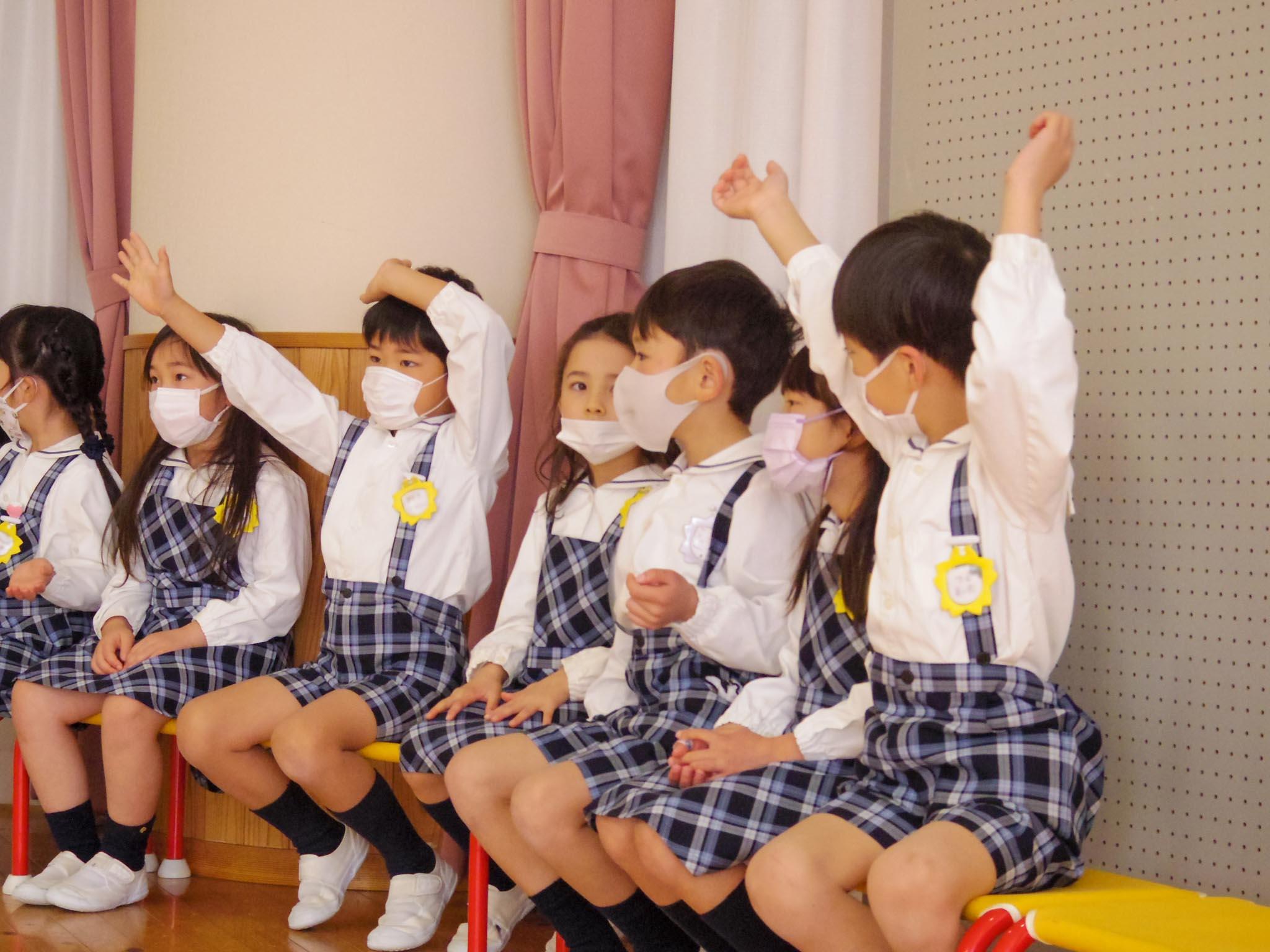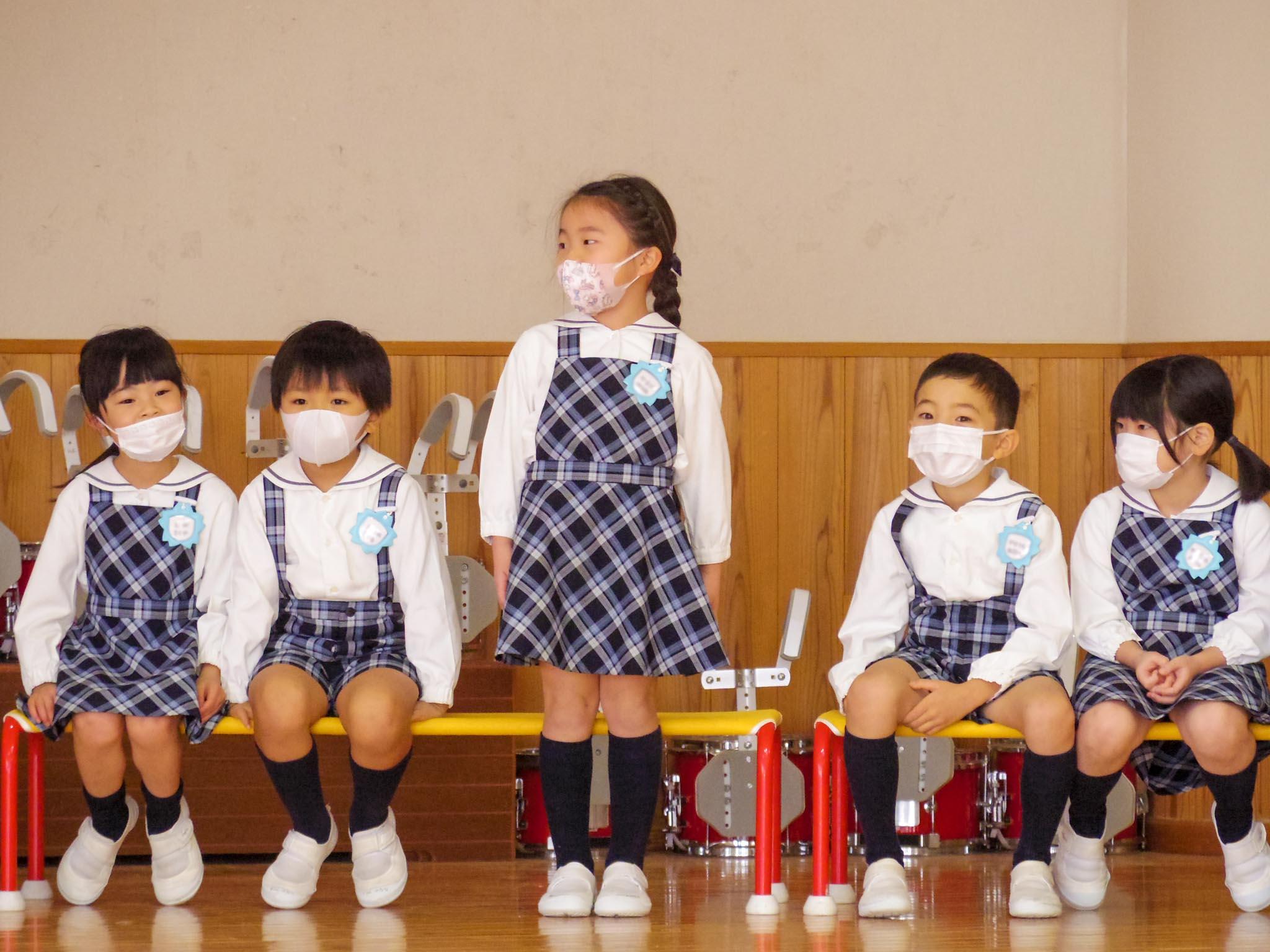 はじめに年長児たちの自己紹介のあと、年少児はお祝いの言葉と歌をプレゼントしました。
