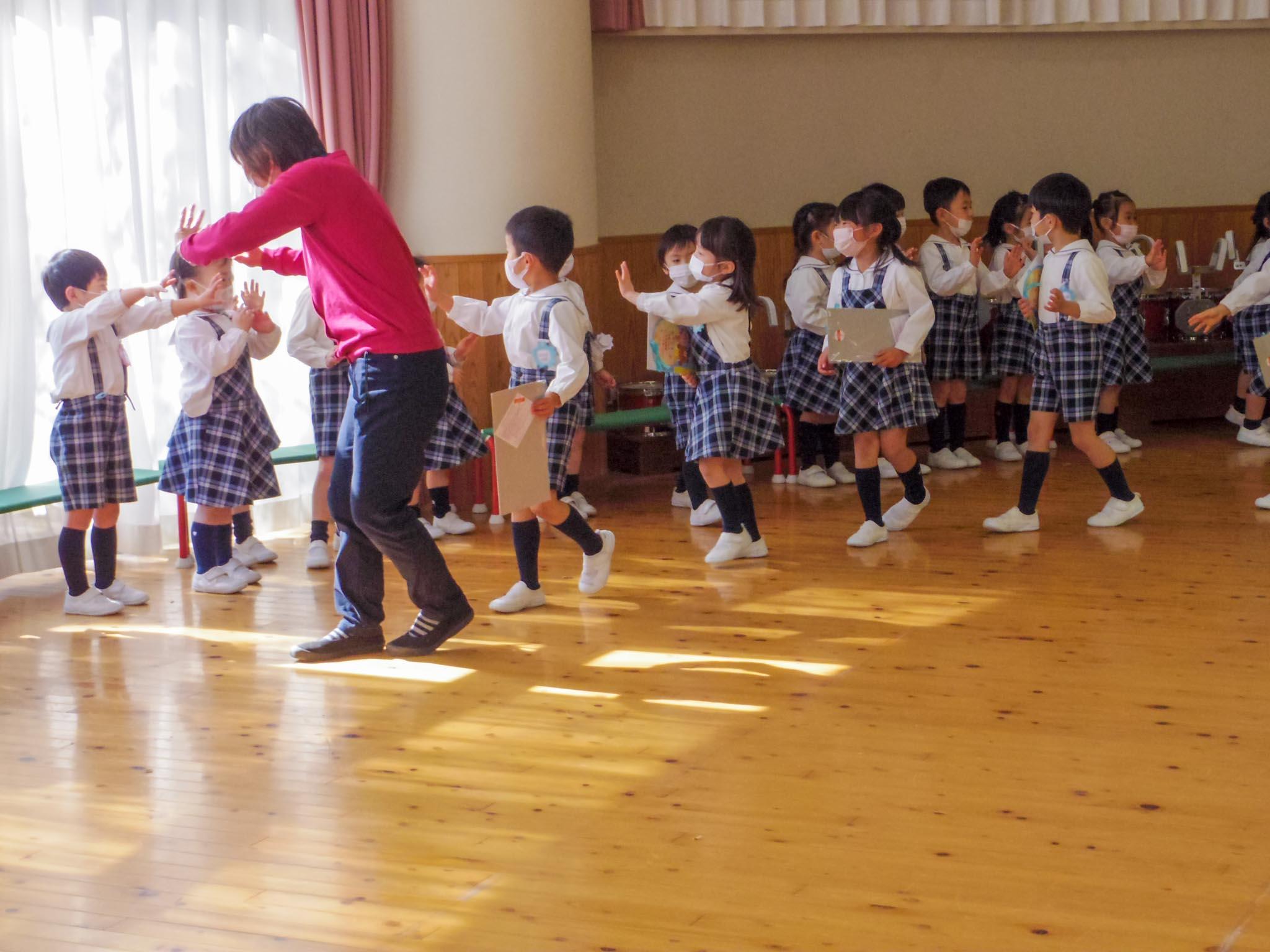 3月4日(金)、卒園式を控えた年長組のお別れ会を年少組、年中組の二部制に分かれて開きました。