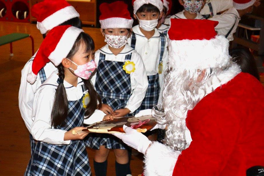 するとサンタさんが大きな袋を持って現れました。「わぁ!サンタさんだぁ!」と目を輝かせた園児たちに、サンタさんは一人ひとりにプレゼントを手渡してくれました。