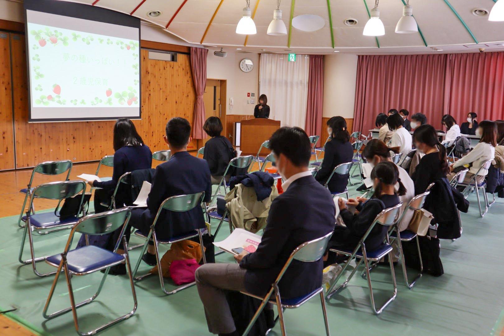 スライドを交えながら園内での生活や年間の活動についてのご紹介、入会方法について説明しました。また、ご希望の方に個別の相談にも応じました。