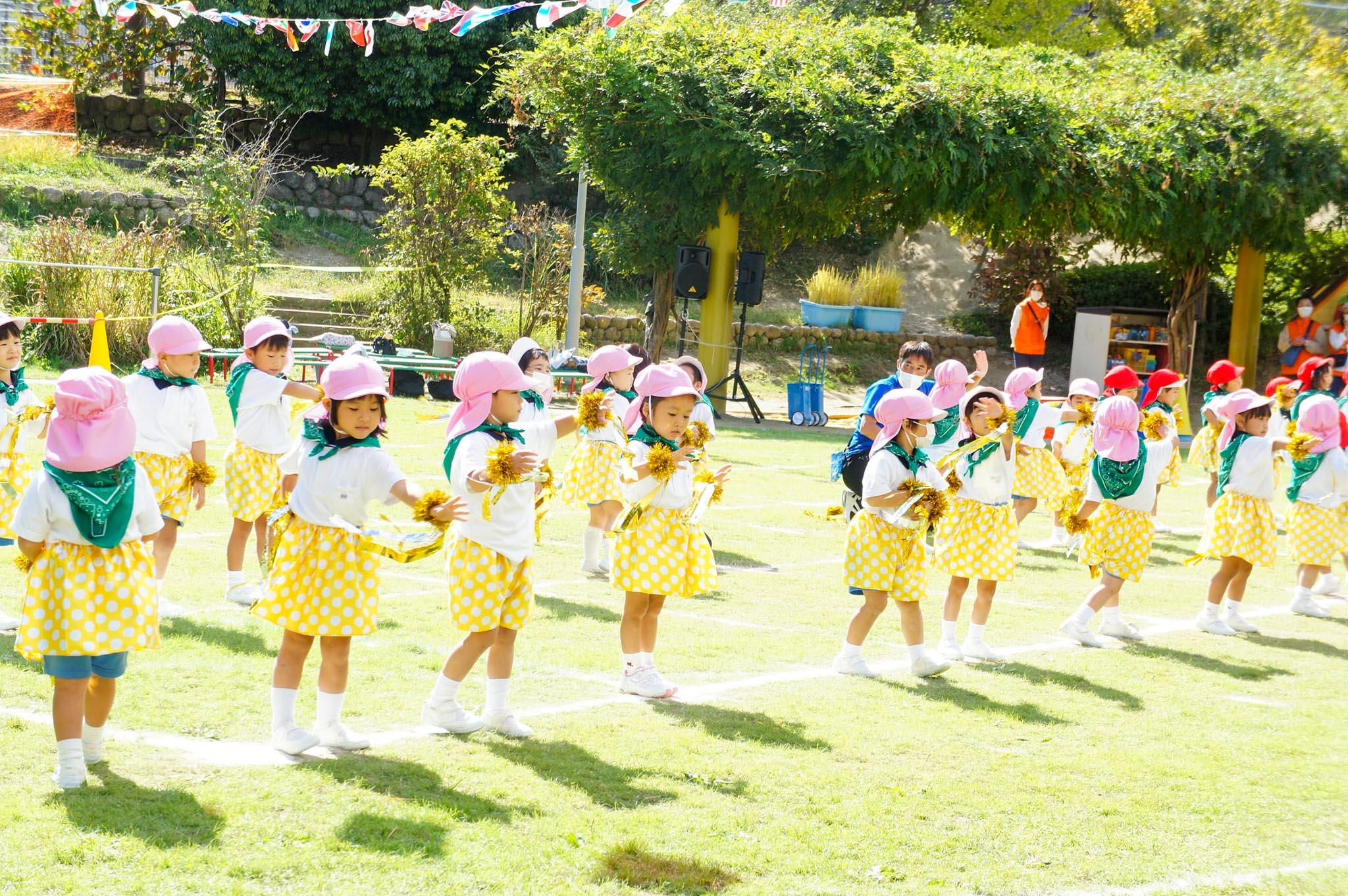 次に年中組のバルーン「Lamp(未来に向かって)」。さらに年少組がリズム表現「パンパカパーンパイナップル」を披露しました。