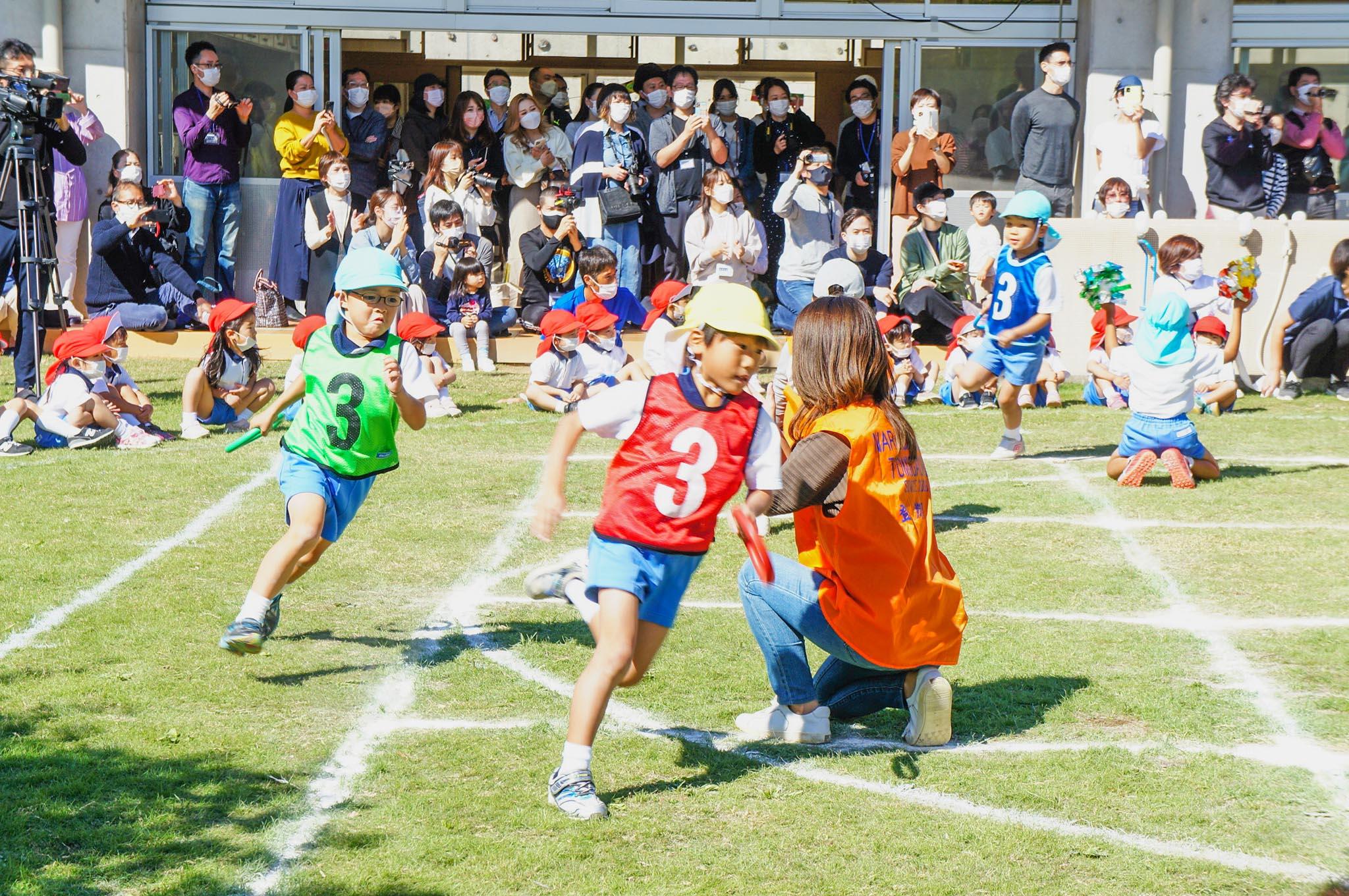 運動会の最後は、年長組のリレー「繋ぐ!Last Run」です。年長組の子どもたちにとっては、幼稚園生活最後の運動会でのリレーです。年中組や年少組の子どもたちから、大きな拍手と声援を受けて、全力で走りきりました。