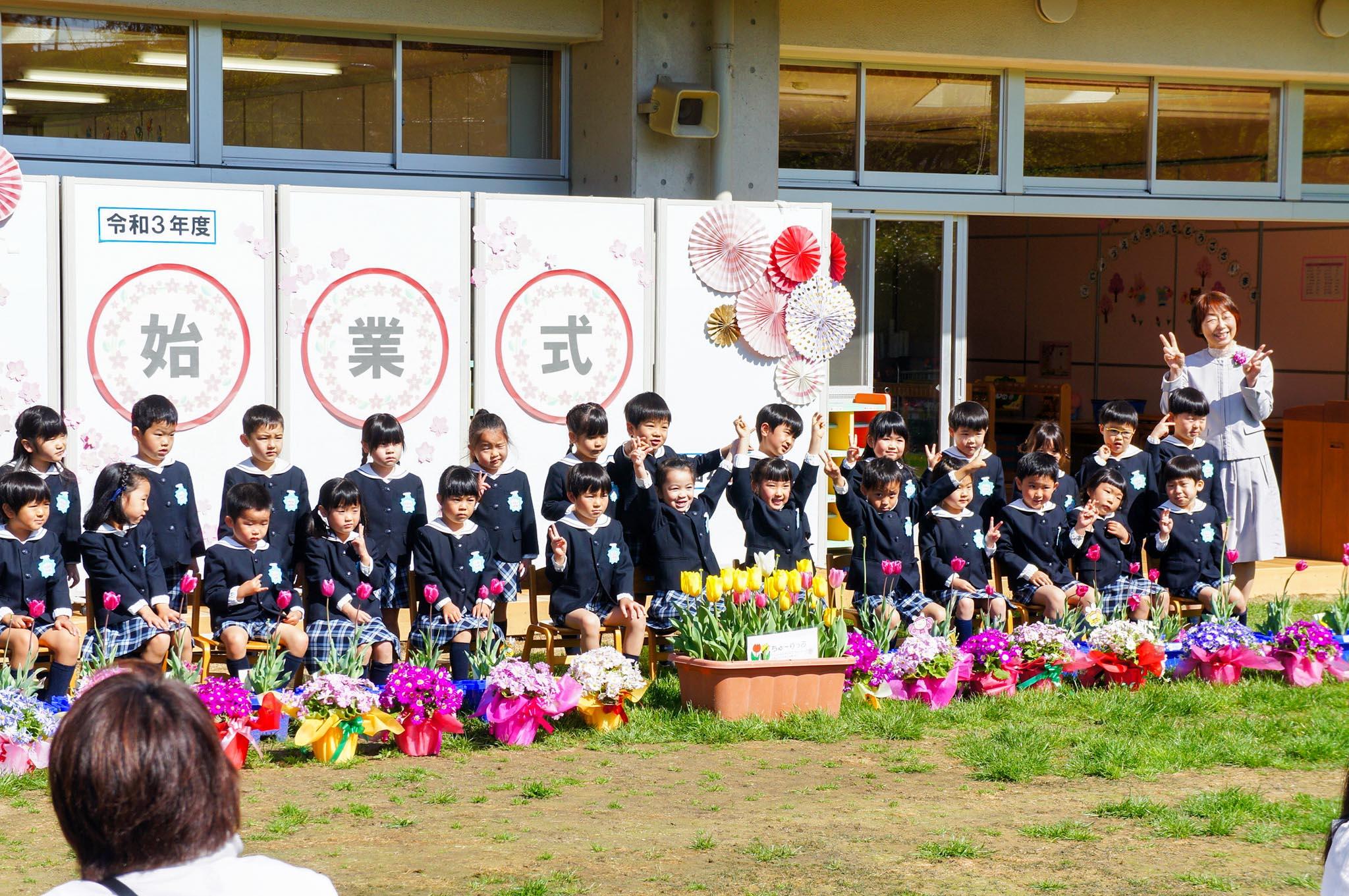 始業式で谷川園長は、「先日、新しい年少組さんが、入園してきました。みんなはお兄さん、お姉さんとして見守ってあげてくださいね」と、話しました。
