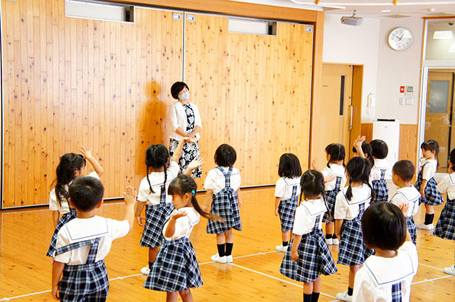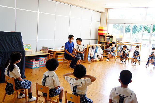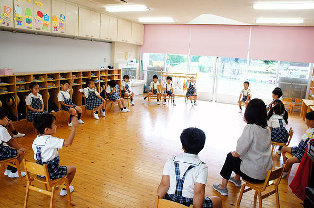 始業式のあとは、各保育室で夏休みの報告会を行いました。「お家のプールで水遊びをして楽しかったよ」「いっぱいDVDで映画を観たよ」「お庭でのバーベキューはとっても面白かった」など、子どもたちは、いつもの夏休みとは違う、お家で楽しむ夏休みを満喫したようでした。