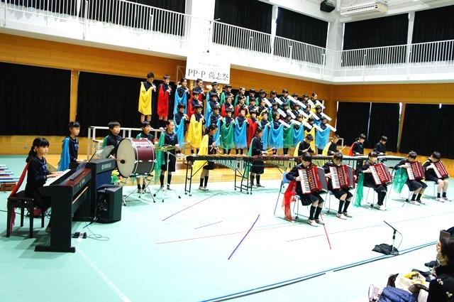 そして最後はP4(小4)生の音楽発表です。カスタネットによる見事なアンサンブルに続き、『未来への讃歌』の二部合唱、そしてリコーダー、鍵盤ハーモニカ、ピアノ、アコーディオンなどで、見事な演奏が披露されました。