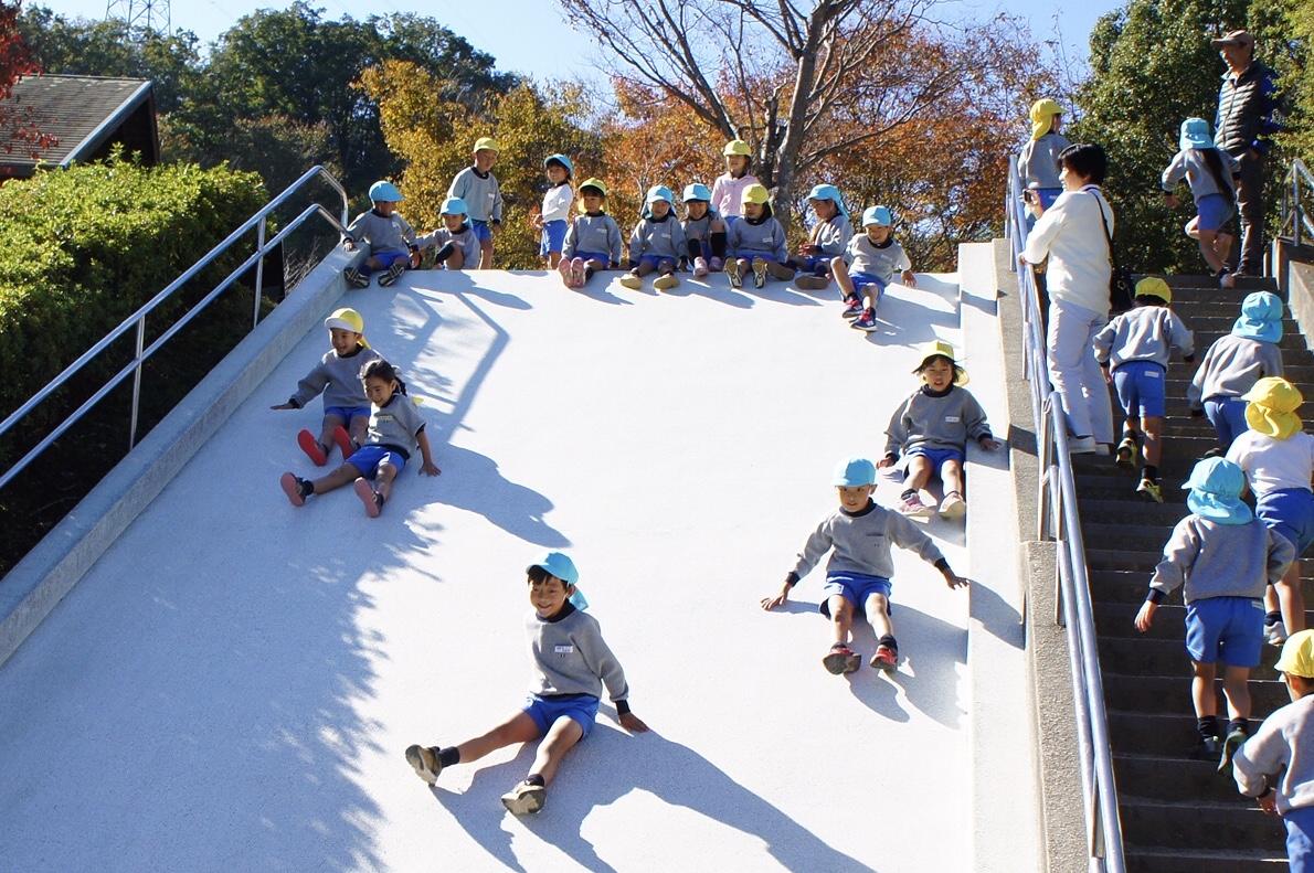昼食後は、「森の宝島」でアスレチックやターザンロープ、そして子どもたちに一番人気があった大きな滑り台で楽しみ、園にもどりました。