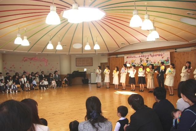 先生の紹介の後、みんなで歌を歌い、子どもたちと一人ひとり握手をして和やかな雰囲気の中で式は進行しました。