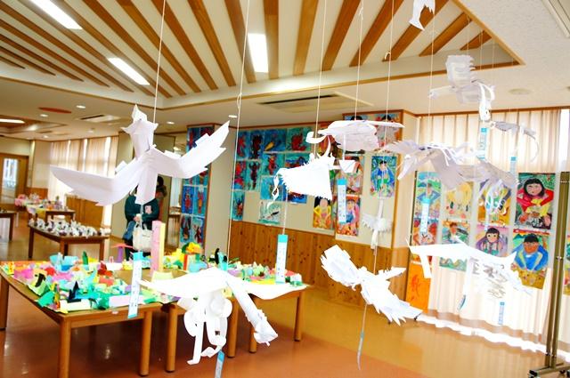 また、PMダイニングでは合同作品展が行われ、園児や児童がつくり上げた絵画や造型、動画作品などが会場いっぱいに展示されていました。今年度は、P棟でも各学年展示が行われ、多くの人が足をとめていました。