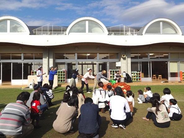 最後は人形劇です。先生たちで「大きなかぶ」を上演しました。子どもたちも一緒になって「うんとこしょ、どっこいしょ!」と大きな掛け声をかけると、大きなかぶは抜け、子どもたちは「わーっ」と大きな拍手で喜んでいました。