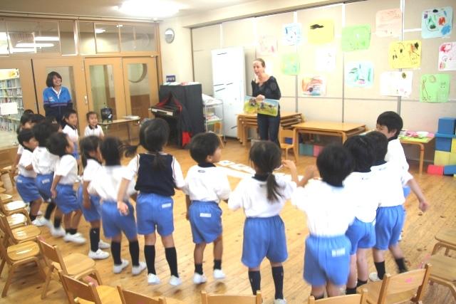 11月9日(金)、園児の保護者であるデビ先生をゲストティーチャーにお迎えして、年少組で「英語で遊ぼう」を行いました。