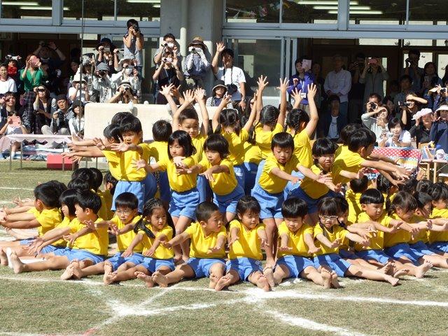 さらに、年長組による組体操「Yeah!Yeah!Yeah!」は、お互いを信頼しあいながら、きれいな技をいくつも決め、観客を魅了しました。