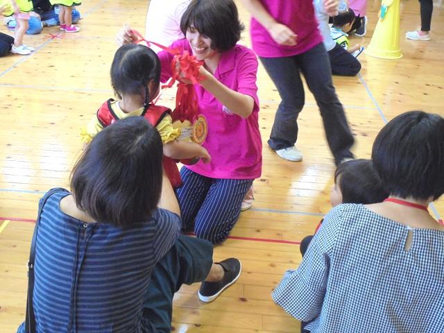 最後には、先生たちから頑張った子どもたちに手作りの大きなメダルをプレゼントしました。