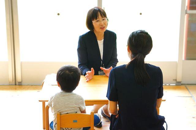 まず、谷川園長は「本園は自然に囲まれた素晴らしい環境にあります。子どもたちが、たくさんの草花や生き物たちに触れ、日々さまざまな驚きを発見する機会にあふれています。また、『遊びを通して心の根っ子を育てる』という、本園の基本的な考え方を踏まえて、子どもたちが創意工夫を楽しみながら遊ぶことを大切にしています」と保育方針について話しました。