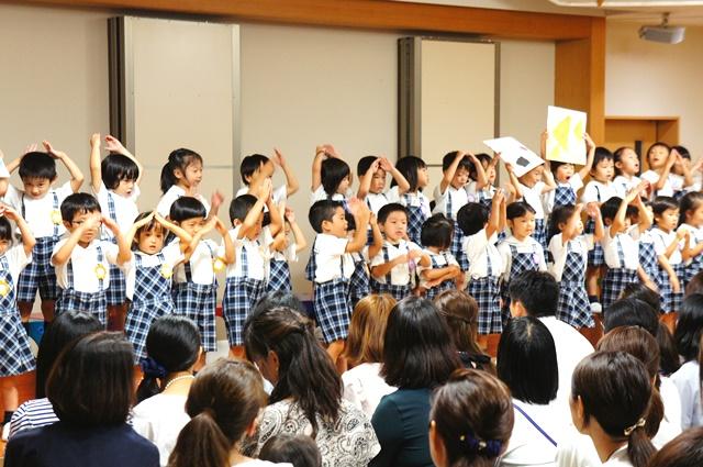 保護者のみなさまも来園し、年少組は揃った振り付けをして「アイアイ」を歌いました。4月に入園し、3ヶ月の子どもたちの成長に、感動で目頭を抑える保護者の方も見受けられました。