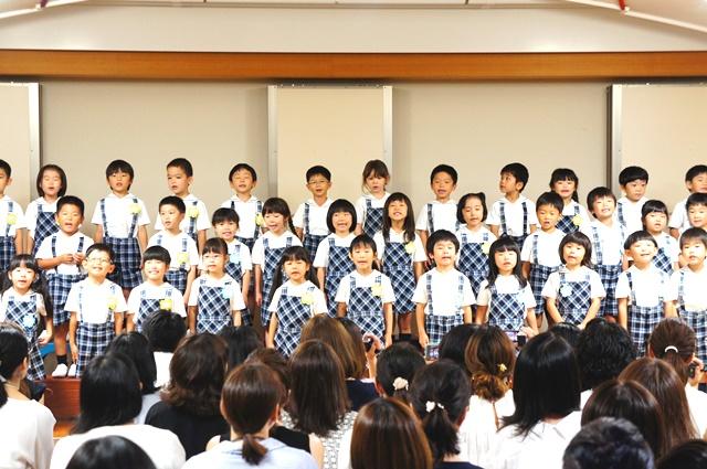 年長組は、「青い空に絵を描こう」など英語の歌を2曲含む4曲の歌を堂々と歌い学年発表会の最後を飾りました。