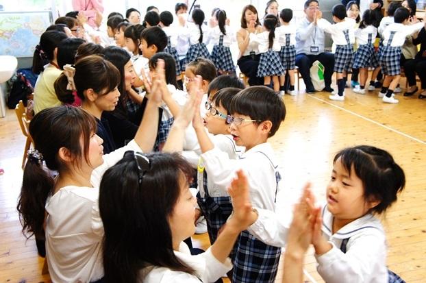 この春、入園して1ヶ月ほどの年少さんは、みんなで声を揃えて読む素読の様子を見ていただきました。また各保育室では、保護者の方々と向かいあい歌を歌ったり、手遊びをしたり、触れ合いを楽しみました。