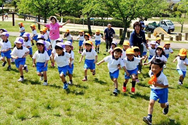 4月20日(金)、年中の園児たちが、大和郡山市の「九条公園」へ遠足に出かけました。