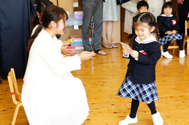 職員紹介時には、先生たちが手作りのお花を手に「ちゅうりっぷ」の歌を歌い、いっしょに歌う新入園児に和やかな雰囲気となりました。
