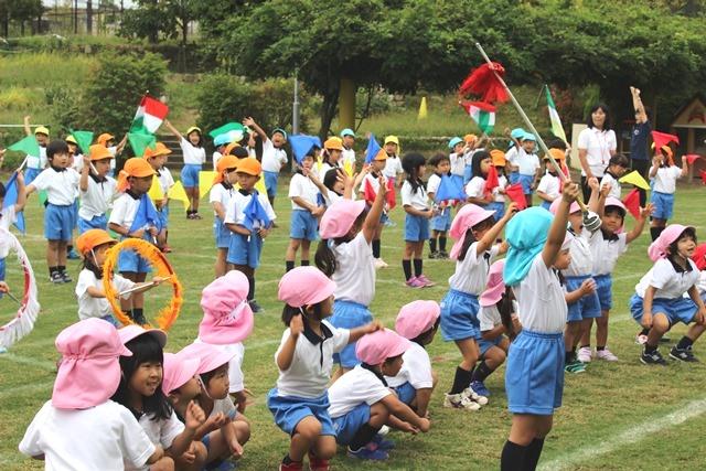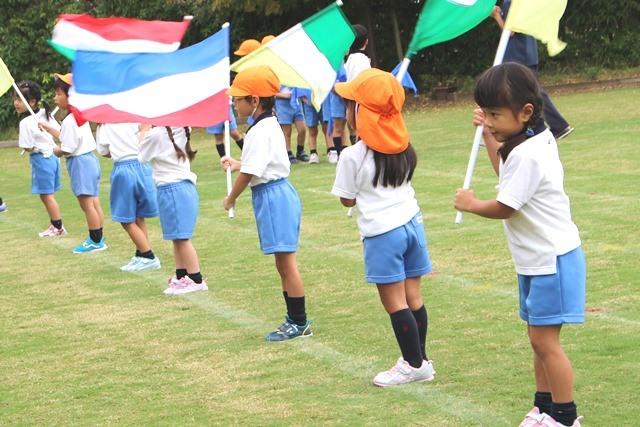このマーチング・パフォーマンスは、10月21日(土)のミニ運動会で披露されます。その本番に向けて、まだまだ練習が続きます。子どもたちは「すごく楽しい」「練習も面白い。もっといっぱいしたい」と笑顔でこたえていました。