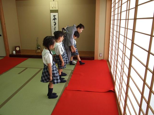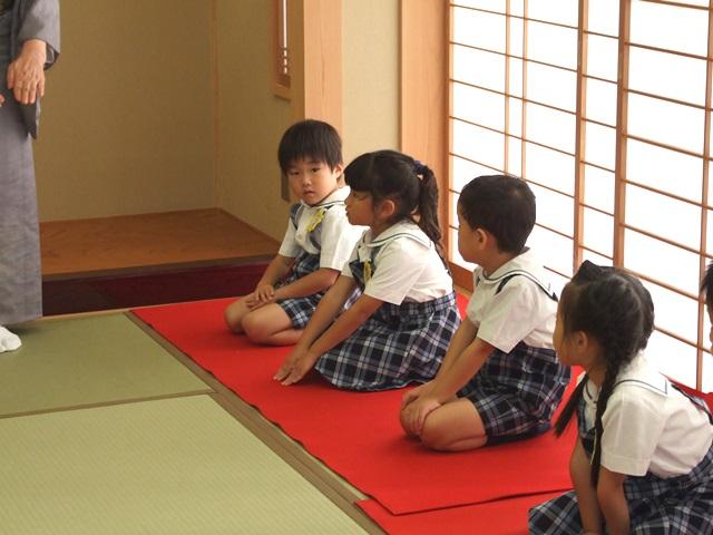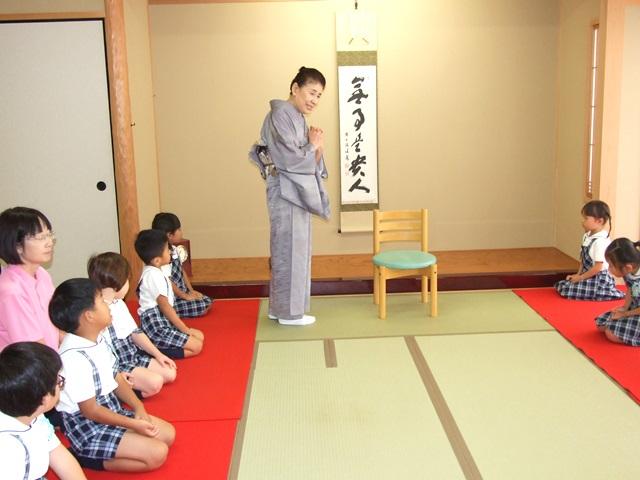 9月25日(月)、年長の子どもたちは、裏千家の赤木宗好先生から礼法を学んでいます。