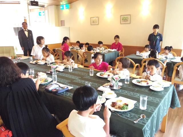 その後、班に分かれて泊まるお部屋へと入ると、早速折り紙やブロックをお友達と楽しみました。お風呂に入って、ディナータイム。