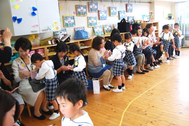 各保育室では漢詩の素読に始まり、歌を歌ったり体を動かしたり、普段の幼稚園での様子を参観してもらいました。
