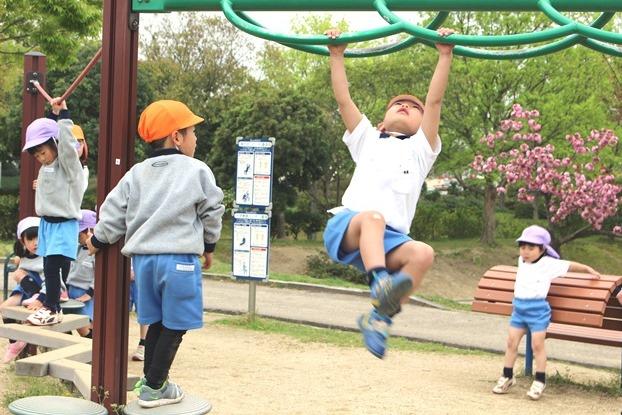 4月21日(金)、昨夜の小雨も上がり、気持ちのいい爽やかな春の日、年中の子どもたちが、大和郡山市の「九条公園」へ、遠足に出かけました。