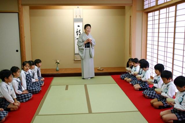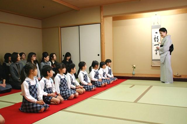 赤木先生からは「練習のときよりも、本番の方が落ち着いて、うんと上手にできましたね。これからもお作法のこと、自然に対するやさしい気持ちを忘れないでください。1年間ありがとうございました」と声をかけていただきました。子どもたちは「足がしびれたけど、がんばった」「ちょっと苦いけど、お茶もおいしかった」と誇らしげな様子で、保護者の方が見守るなか、成長した姿を披露することができました。