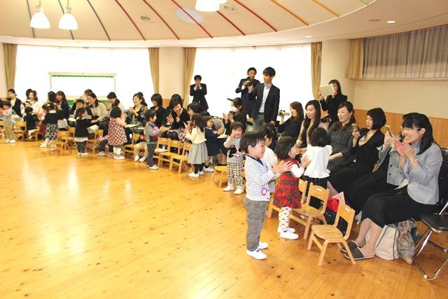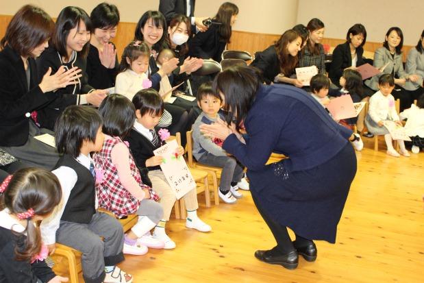 続いて保護者の皆様に「これからは幼稚園に上がり、子どもたちの中にあるいろいろな芽を育ててあげてください。好奇心の芽、感性の芽、主体性の芽、心やさしい芽、などなど、たくさんの芽が芽吹いていきます。そうしたら今度は根っこが育つようになります。そのためにはたくさんの体験をさせてあげることが大事です。皆さんと出会って、本当に幸せでした」と話しました。