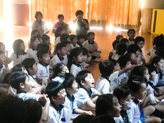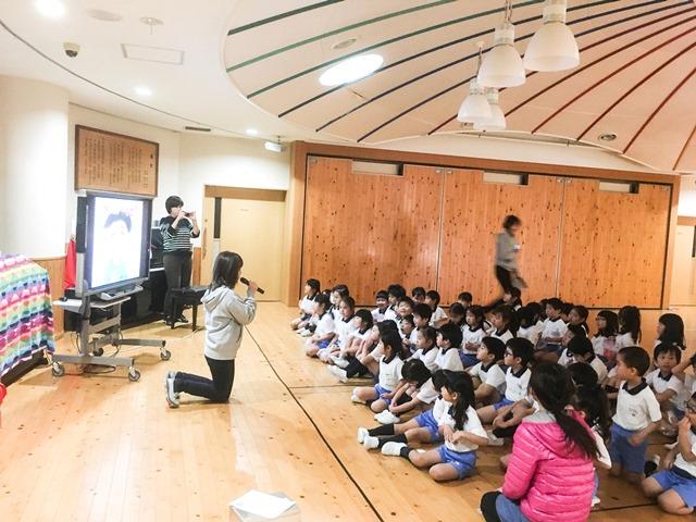 まずは先生から「みんなの心の中の鬼を追い出しましょう。鬼は豆が大嫌い。そしてイワシは苦いから、柊はトゲがあって痛いから、鬼は逃げるのです」と節分の由来を聞いた後、みんなで「豆まき」の歌を歌いました。