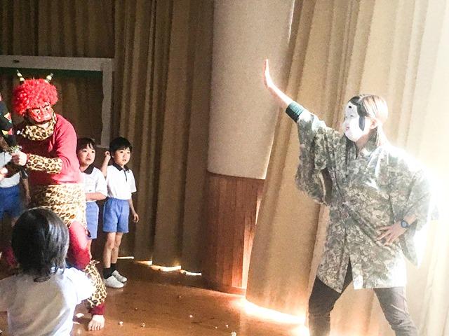 「みんなの心の中にはどんな鬼がいるのかな。弱虫な鬼かな。怒りん坊の鬼かな。ねぼすけさんの鬼かな」と絵本を読み聞かせしながらの先生は子どもたちに問いかけました。