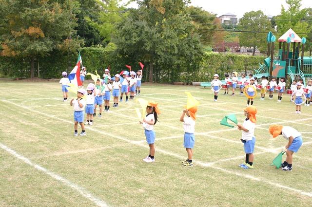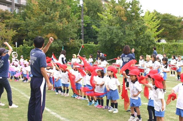 10月14日(金)、講師の幡井信子先生の指導のもと、全園児がマーチングの練習を行ないました。