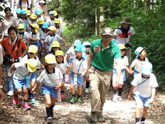 その後ガイドウォークに出発しました。森の中でニセアカシアの葉っぱを葉笛として鳴らしたり、久保先生から川のはじまりのお話や”にが木”がお薬になるなど、森の不思議についてたくさん教えていただきました。