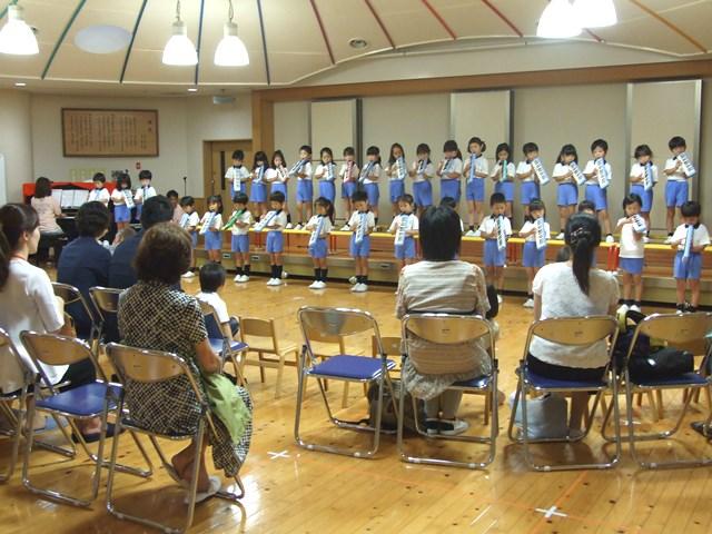 また年長組の園児たちは、皆さまを遊戯室にお招きして、歌や言葉、鍵盤ハーモニカの演奏を披露しました。園長先生が挨拶で、「今日、発表した年長さんたちも、2年前には、みなさんのお子さまと同様です。いろいろな経験を積み重ねることを通して自信をつけ、今では立派に発表ができるように成長しました」と語りました。