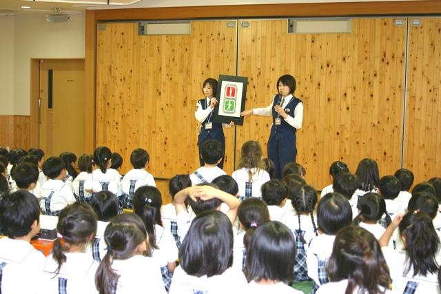 続けて講師から「交通ルールを守ることはみなさんの命を守ることです。交通事故にあってしまったら痛いですし苦しいです。命を無くしてしまうかも知れません。こわいですね。そうなるとみなさんだけではなく、おとうさんやおかあさんもとても悲しみます。そんなことがないように、しっかりと聞いてくださいね」とお話がありました。