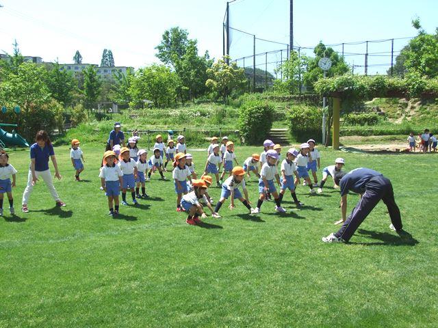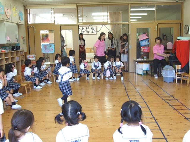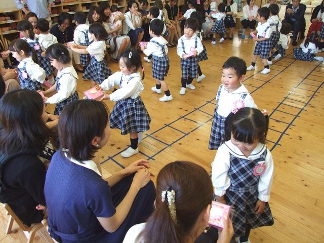快晴の空に恵まれたこの日、各保育室で年中組と年長組は、参観に来ているお母さんたちに普段行っている黙想や漢詩の素読、歌などをお披露目。一方、年少組は歌を披露しました。