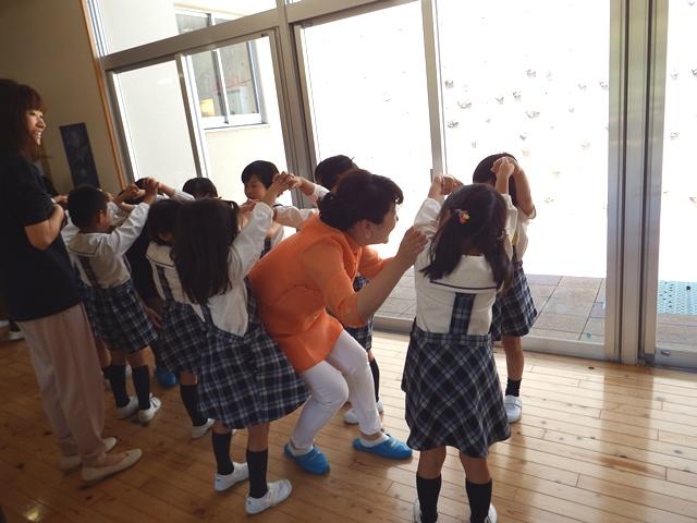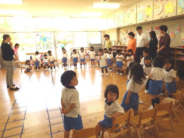セレモニーが終わると、年少組の保育室に移動して、英語の時間を見学しました。