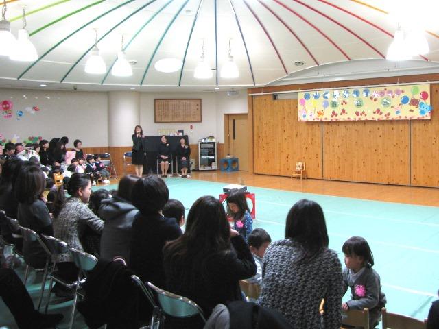 園長先生は、「皆さんは、なんでも自分でしようと姿を見せてくれました。4月になったら新しい生活が始まりますが、ニコニコと笑顔いっぱい、元気に過ごしてくださいね」とお話ししました。