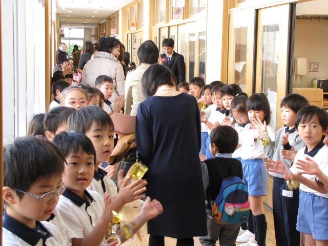 担任の先生の挨拶のあと、退場です。幼稚園のお兄さん、お姉さんたちのお見送りの中、子どもたちは晴れやかに園をあとにしました。春には、新しい生活がスタートします。いちご組での経験が役に立つことを願っています。