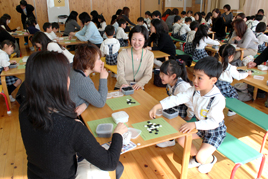 最後は、碁石をどれだけとれたのか、または、取られたのかなどを確認して、大いに盛り上がり、「親子囲碁教室」を終えました。