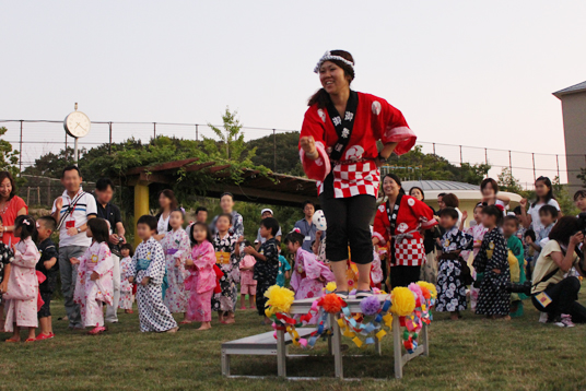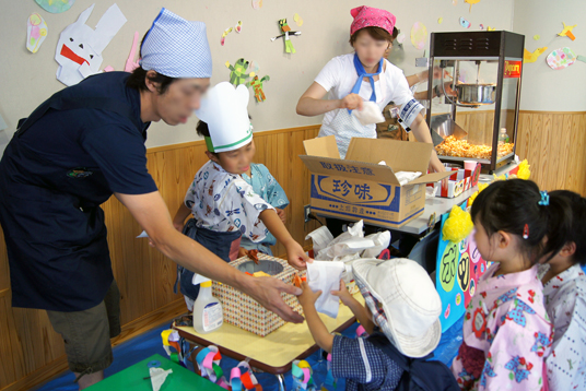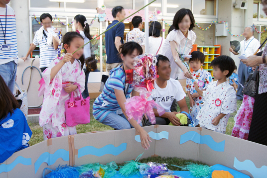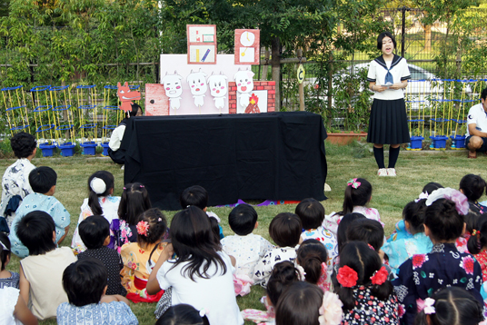 7月16日の夕方、第3回「夕涼み会」を開催しました。育友会(登翔会)の全面的な企画・協力のもと多くの園児と保護者の方々にご参加いただきました。そして、奈良県私立幼稚園連合会第1ブロックの幼稚園に通う親子の皆様にもお越しいただき、暑さを吹き飛ばすほどの盛り上がりとなりました。 |